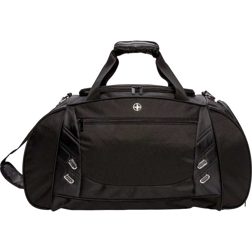 Hochwertige Sporttasche von Swiss Peak. Die Tasche hat ein geräumiges Hauptfach mit U-förmigem Reißverschluss, ventiliertem Schuhfach an der Seite und Flaschenhalter. Auf der Vorderseite befindet sich ein Reißverschlussfach für Smartphones oder andere kleine Gegenstände. Der Tragegriff ist verstellbar. Die Tasche ist frei von PVC und daher eine umweltfreundliche Wahl.