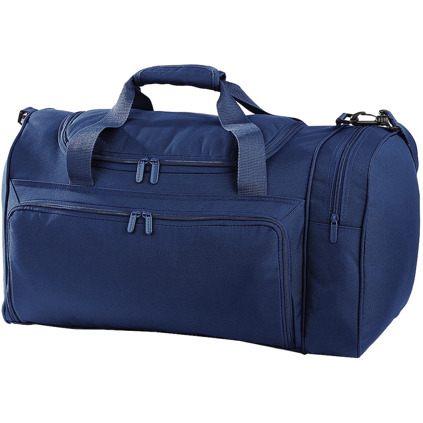 Hochwertige Sporttasche mit schicken Details. Auf einer der kurzen Seiten befindet sich ein Reißverschlussfach, ebenso auf der Vorderseite. Der Tragegriff ist wattiert und kann abgenommen werden. Die Tasche hat einen verstärkten Boden für mehr Stabilität. An der Unterseite befinden Füße die das Rutschen der Tasche verhindern.