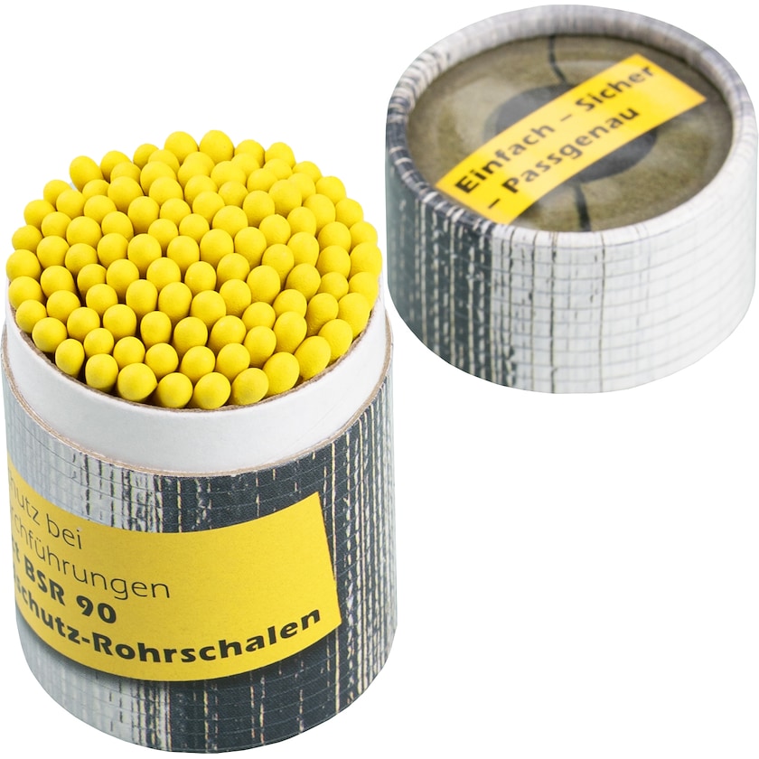 Große, runde Streichholzschachte, die in Einheiten von 1000 Stück bestellt werden kann. Exper hat Platz für 88 Streichhölzer. Druck in bis zu vier Farben nach der Pantonese-Skala und darüber in CMYK. Ein etwas andere Streichholzschachtel, die Aufmerksamkeit weckt.