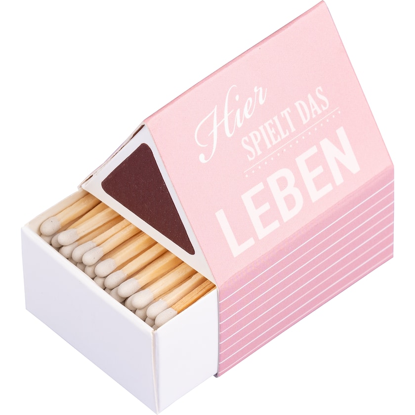 Lustige Streichholzschachtel in Form eines Hauses. Druck in max. 4 Farben gemäß Pantone-Skala, darüber hinaus in CMYK.