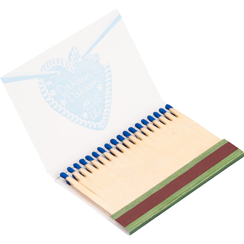 Rechteckiges Streichholzbriefchen mit Platz für 36 Streichhölzer. Druck bis nach Innen in max. 4 Farben gemäß Pantoneskala und darüber hinaus in CMYK.