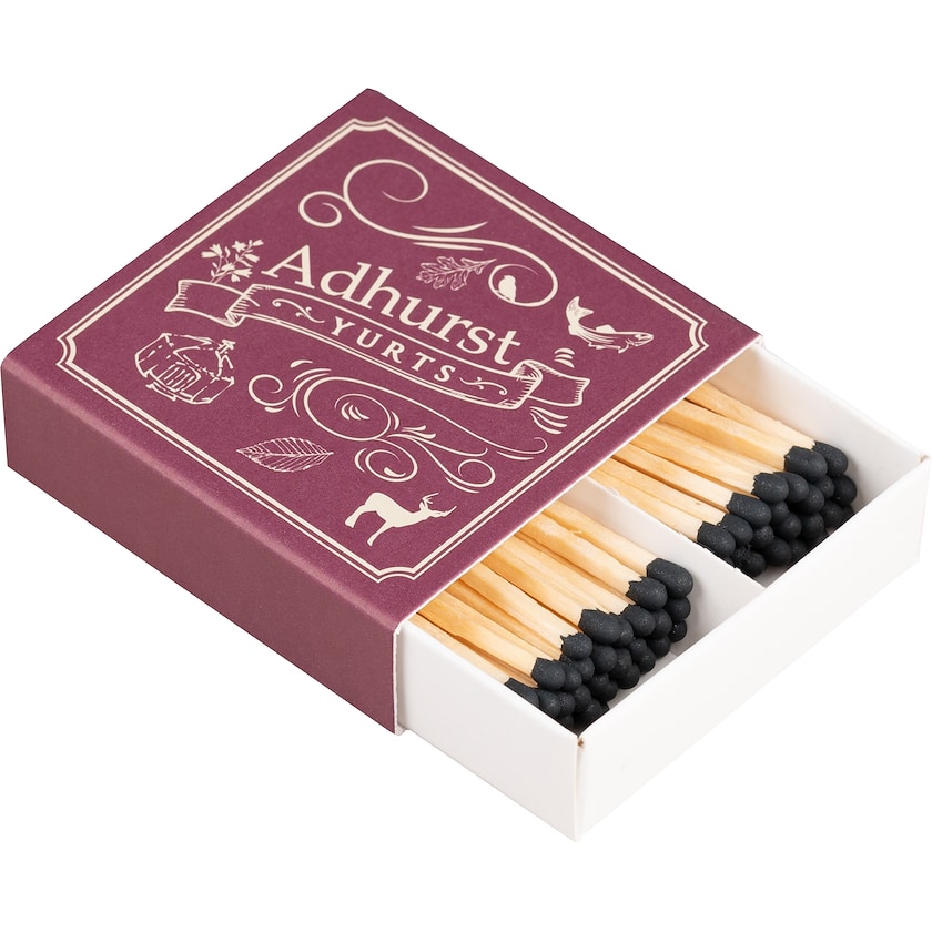 Streichholzschachtel mit zwei Fächern und 70 Streichhölzern. Eine einzigartige Streichholzschachtel für individuelle Unternehmen. Der Druck erfolgt in bis zu vier Farben nach der Pantone-Skala und kann zusätzlich im CMYK-Farbmodus ausgeführt werden. Sie haben die Wahl zwischen 16 verschiedenen Kopf- und 3 unterschiedlichen Holzfarben.