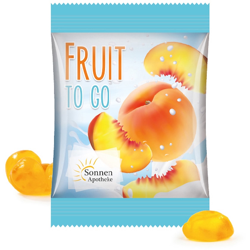 Vitaminreiche Weingummis mit Aprikosengeschmack. Weingummi vom deutsche Qualitätsherstellen Trolli. Mit echten Fruchtstückchen und 10 Vitaminen. Die ganze Verpackung wird nach Ihren Wünschen bedruckt.