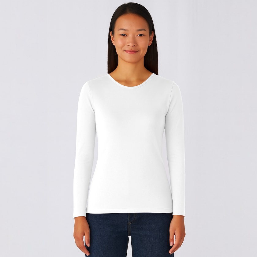 Langärmliges Damen-T-Shirt mit moderner Passform. Das T-Shirt besteht aus einem 185 Gramm schweren Baumwollstoff, der in mehreren verschiedenen Farben erhältlich ist. Gibt es auch als Herrenmodell.