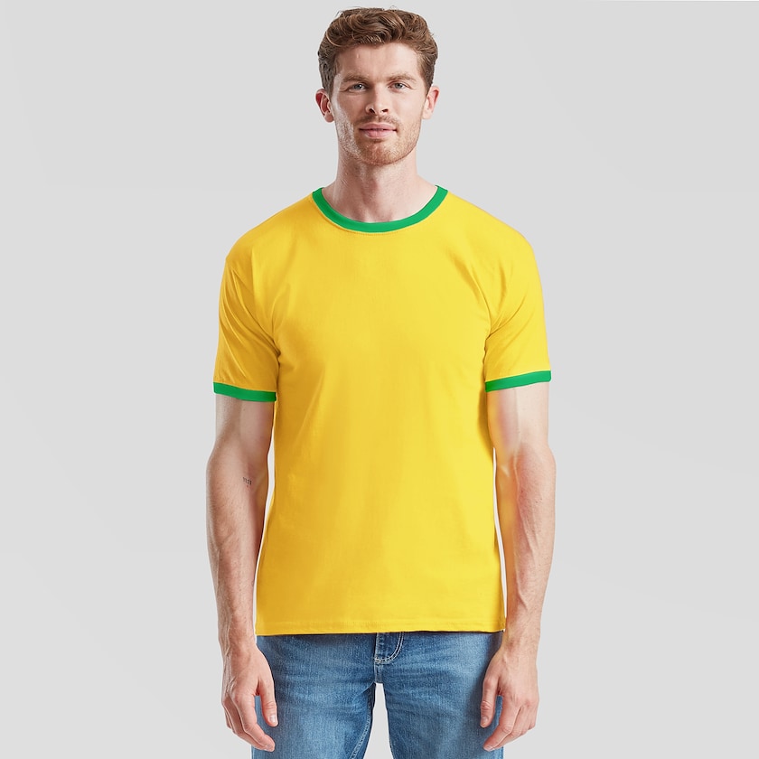 Schöns, günstiges T-Shirt mit weißer Kontrastfarbe an Hals und Ärmeln. Die T-Shirts werden einzeln verpackt geliefert.