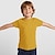 Umweltfreundliches Kinder-T-Shirt für sportliche Aktivitäten. Das T-Shirt besteht aus einem technischen Stoff aus 47 % recyceltem Polyester und 53 % normalem Polyester. Auf einem Ärmel befindet sich ein ECO-Symbol.