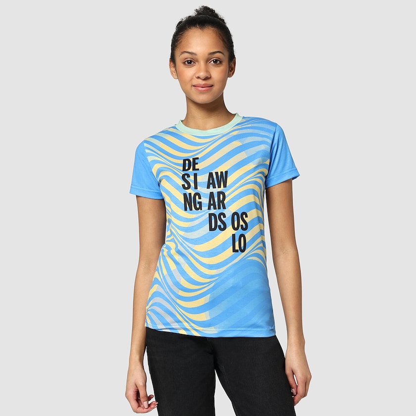 Speziell angefertigtes Damen-T-Shirt aus Polyester mit Baumwollgefühl. Das Damen-T-Shirt besteht aus einem weißen, 145 Gramm schweren Polyesterstoff. Der gesamte Stoff ist bedruckbar und lässt sich nach Ihren Wünschen digital bedrucken, bevor das T-Shirt vernäht wird. Dadurch sind unbegrenzte Druckanzahl, eine unbegrenzte Anzahl an Druckfarben sowie Drucke bis zu den Nähten möglich. Erhältlich ist das T-Shirt in den Größen XS bis 4XL. Die Mindestbestellmenge pro Größe beträgt 5 Stück. Die Größentoleranz liegt bei +/- 1,5 cm, und wir behalten uns vor, dass die gelieferte Menge um +/- 5% abweichen kann – die gelieferte Menge wird in Rechnung gestellt. Da das T-Shirt speziell angefertigt wird, ist die Lieferzeit länger als üblich. Gibt es auch als Herrenmodell.