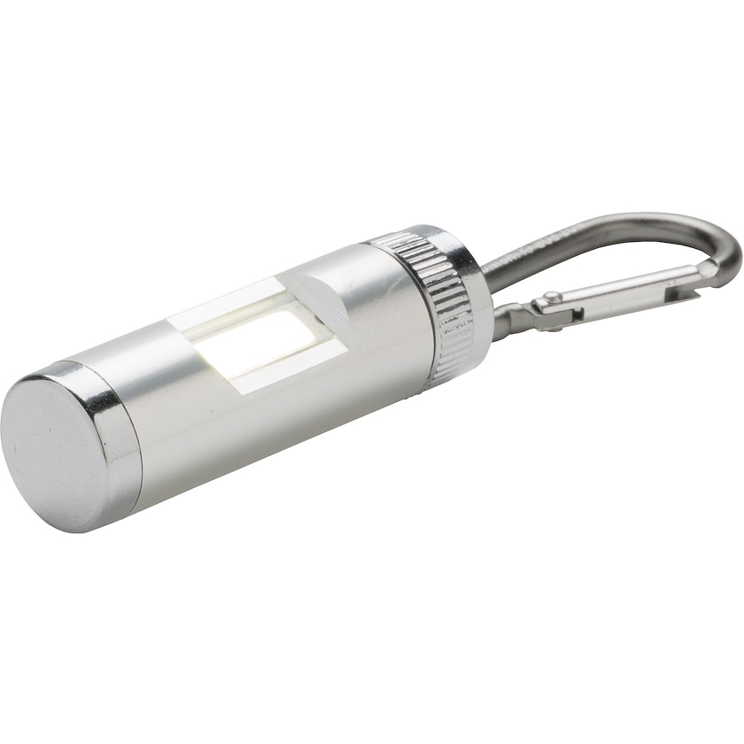Minitaschenlampe mit ultrastarker COB-Diode. Die Taschenlampe scheint sehr hell. Einfach an Taschen oder Jacken befestigen. Batterien im Lieferumfang enthalten. Bestellen Sie COB-Lampe mit Logo von Axon Profil!