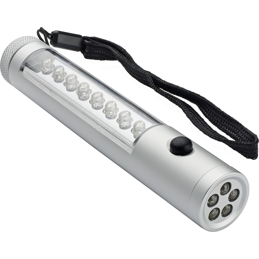 Notfall-Taschenlampe zum Mitnehmen im Auto geeignet. Die Taschenlampe selbst hat 5 LED-Leuchten und im Griff befinden sich weitere 8 LED-Leuchten in Weiß und Rot. Dank eines Magneten lässt sich die Notfall-Taschenlampe im Notfall oder bei kleineren Reparaturen zum Beispiel am Auto befestigen. Batterien sind nicht im Lieferumpfang enthalten.