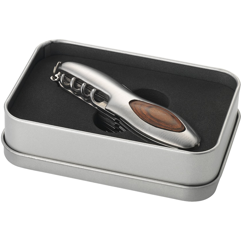 Exklusives Taschenmesser mit 15 Funktionen. Rodney ist aus Metall mit feinen Details aus Holz gefertigt. Wird in Metallbox geliefert. Die Markierung kann auf dem Messer oder der Metallbox erfolgen.