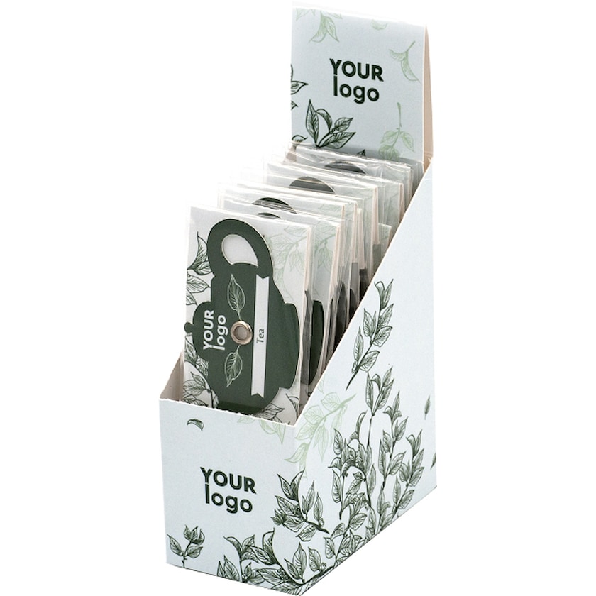 Pappschachtel mit 10 Teebeuteln vom Typ Shelford. Der Aufdruck erfolgt auf der Pappschachtel sowie auf jedem Papieretikett auf jedem Teebeutel. Wählen Sie zwischen vier aufregenden Geschmacksrichtungen. Perfekt für den Pausenraum.