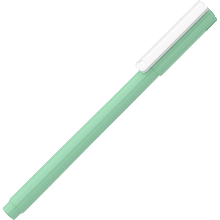 Schlanker Textmarker mit pastellfarbener Schrift. Der Stift besteht zu 30 % aus recyceltem Material. Die Auflagebreite beträgt 1 bis 3 mm.