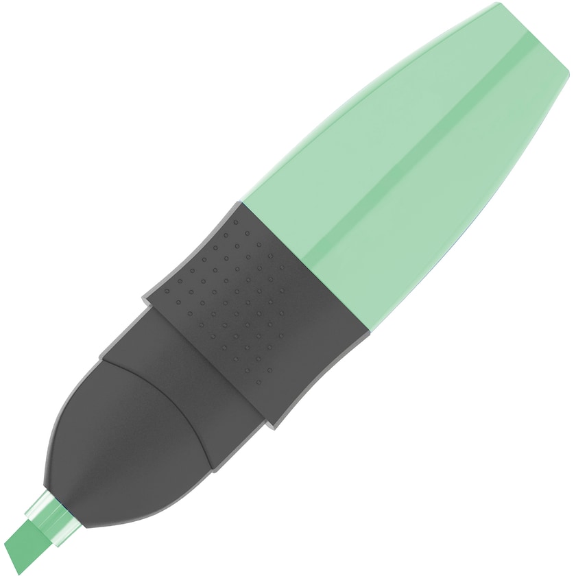 Textmarker mit pastellfarbenen Textmarkern. Der Kunststoff des Stifts besteht zu 30 % aus recyceltem Kunststoff. Die Beschichtungsbreite beträgt 1-4 mm.