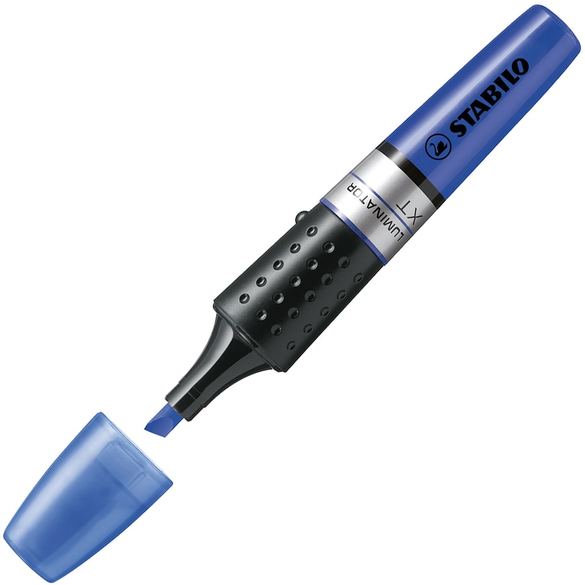 Erstklassiger Textmarker mit eigenem Druck von Stabilo. Der Stift hat Stabilos spezielle Anti-Dry-Out-Technik, wodurch der Stift bis zu 4 Stunden ohne Kappe offen liegen kann. Luminator hat eine größere Tintenpatrone als normale Textmarker und schreibt auch dann noch deutlich, wenn die Tinte zuneige geht. Der Stift hat eine wasserbasierte Tinte und zwei Schreibbreiten: 2mm und 5mm. Das Stabilo Logo fehlt auf den Stiften, die geliefert werden.
