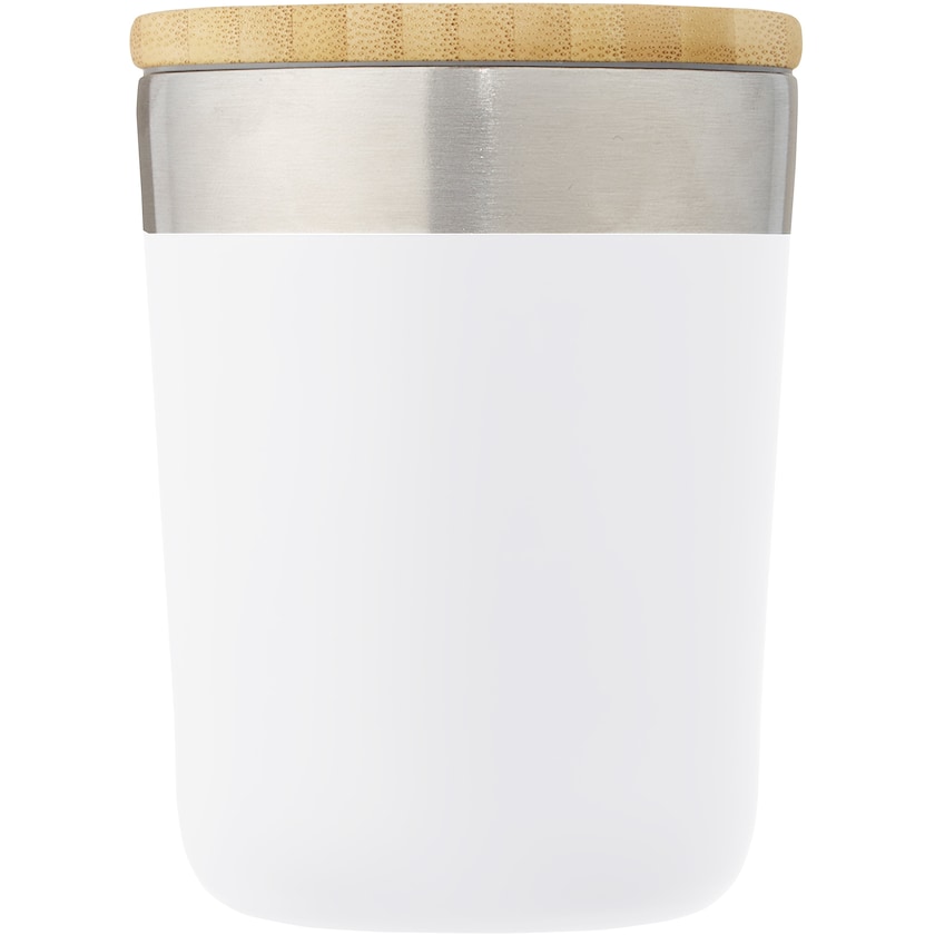 Thermosbecher aus Kupfer mit Bambusdeckel. Der Becher ist doppelwandig und hält Getränke über mehrere Stunden heiß oder kalt. Der Becher ist BPA-frei und nach deutschem Lebensmittelsicherheitsgesetz geprüft und zugelassen. Passt in der Größe zu den meisten Kaffeemaschinen. Handwäsche wird empfohlen.