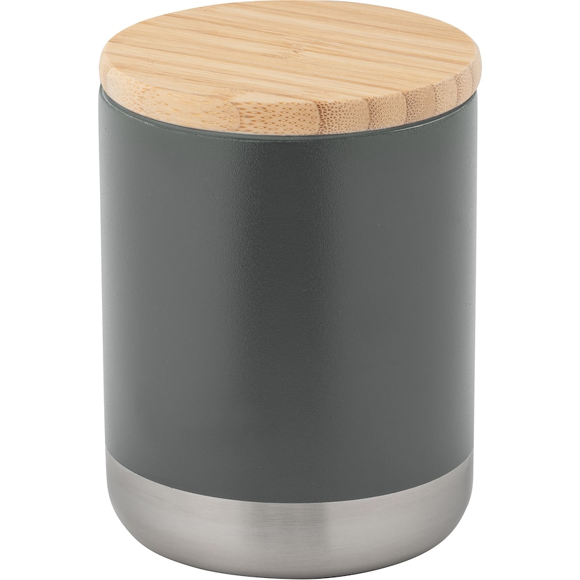 Thermobecher aus Edelstahl mit einzigartigem Design. Der Becher hat Doppelwände mit Vakuumisolierung mit Kupfer. Der Deckel ist aus Bambus. Hält Getränke 5 Stunden heiß und 24 Stunden kalt. Die Kennzeichnung kann wahlweise mit 1-farbigem Druck oder Lasergravur erfolgen.