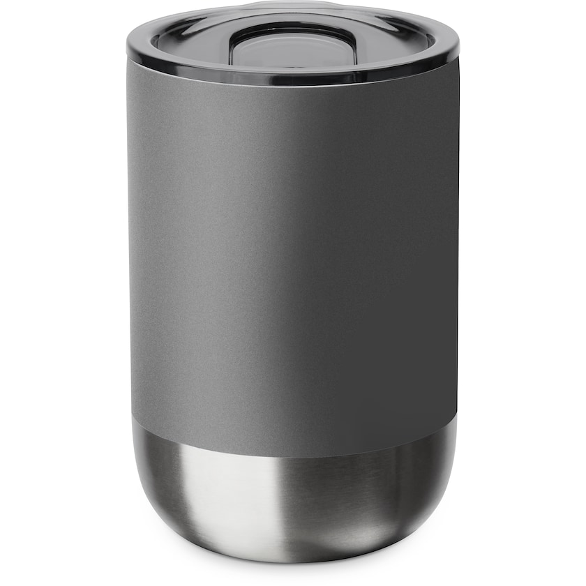 Harmonisch geformter Thermosbecher aus recyceltem Edelstahl. Ihr Getränk wird 3 Stunden heiß und 6 Stunden kalt gehalten. Der Deckel hat eine smarte Öffnung, die auslaufsicher ist. Geliefert in einer Geschenkbox aus FSC-zertifiziertem Papier.