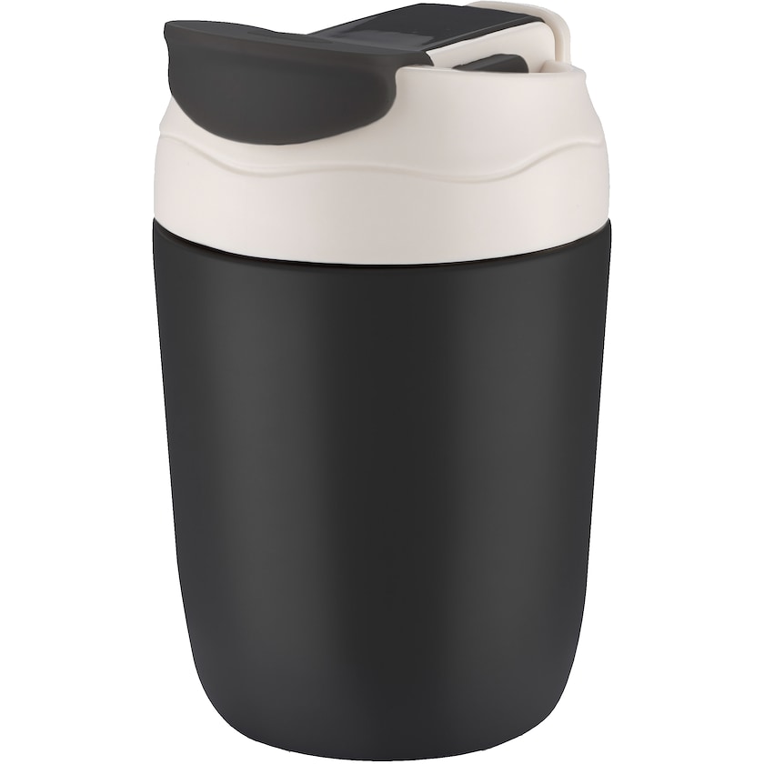 Funktioneller Thermobecher mit schönem Design. Der Becher ist aus Edelstahl und hochwertigem Kunststoff gefertigt. Ihr Getränk wird bis zu 9 Stunden lang warm gehalten. Der Deckel enthält einen Mundstück, das das Trinken erleichtert.