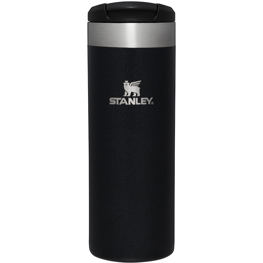 Leichter und geräumiger Thermobecher vom legendären Stanley. Aus vakuumisoliertem Edelstahl. Hält heiße Getränke 6 Stunden heiß und kalte Getränke 8 Stunden kalt. Dicht.
