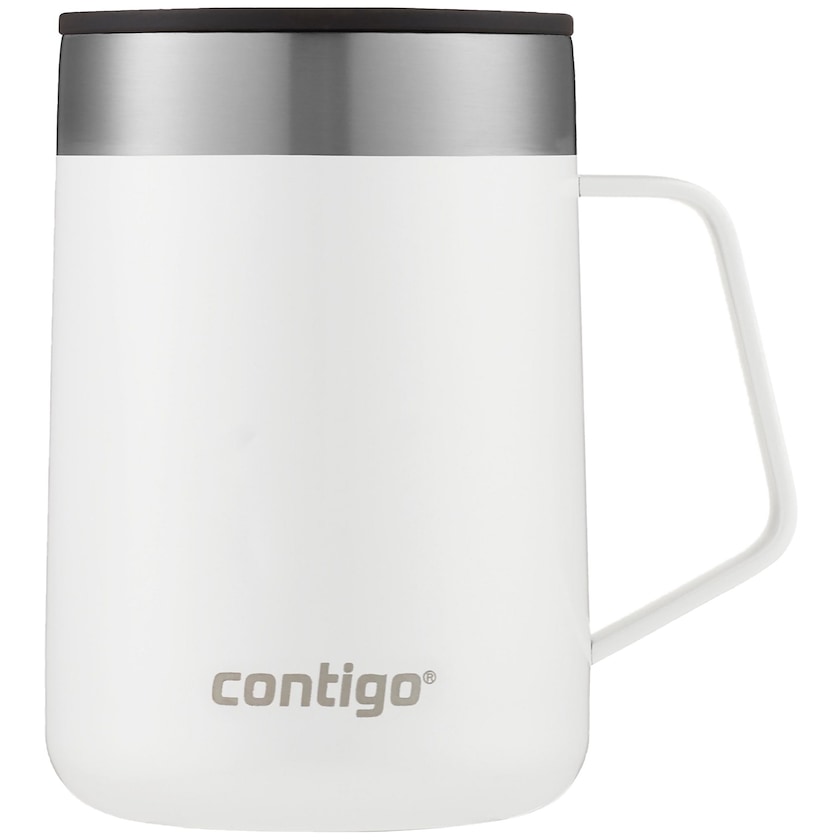 Edelstahl-Thermosbecher von Contigo. Der Becher ist vakuumisoliert, was bedeutet, dass Getränke 5 Stunden heiß und mindestens 15 Stunden kalt gehalten werden. Der Deckel hat eine Druckdüse, die ein Verschütten und Auslaufen verhindert. Passend für die meisten Kaffeemaschinen. Einfach zu säubern. Inklusive Bedienungsanleitung.
