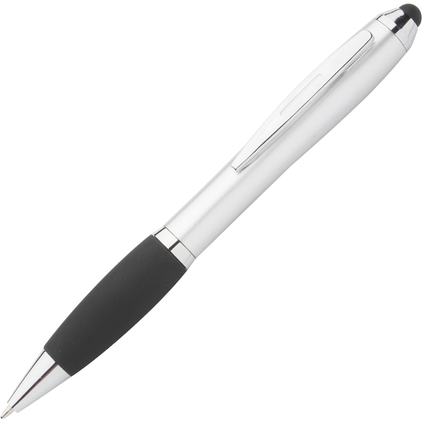 Schöner Kugelschreiber mit Gummigriff und Touchfunktion.