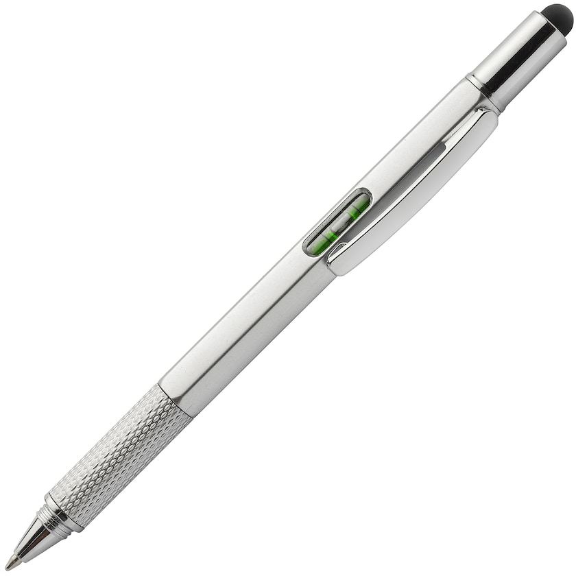 Smarter, multifunktioneller Touchpen. Der Stift ist mit Wasserwaage und Lineal ausgestattet, das Lineal misst in Zentimeter und Zoll. Im Inneren befinden sich 2 Bits für Schraubenzieher. Der ultimative Stift für den Heimwerker!