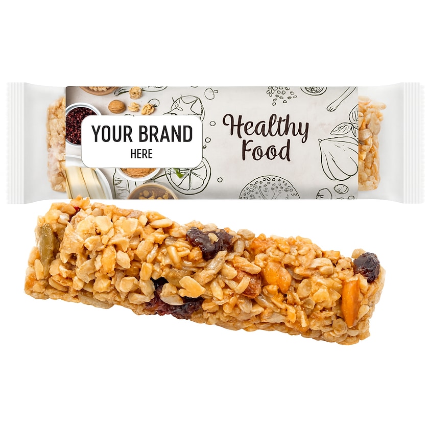 Energieriegel voller wunderbarer Energie! Granville ist handgemacht und völlig frei von Konservierungsstoffen. Wählen Sie aus mehreren verschiedenen Geschmacksrichtungen aus und lassen sie die transparente Verpackung bedrucken. Die Lieferung erfolgt mit Kartonhülle und ihrem persönlichen Aufdruck.