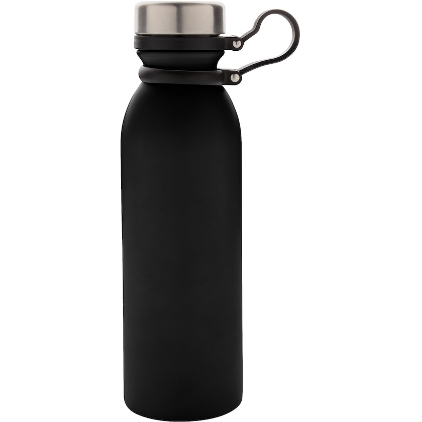 Die Trinkflasche kann auch als Thermosflasche genutzt werden. die Flasche ist doppelwändig und mit einer Kupferisolierung, die dafür sorgt, dass Getränke für 8 Stunden warm und 24 Stunden kalt bleiben. Der Verschluss hat eine Silikonschlaufe, die als Tragegriff genutzt werden kann.