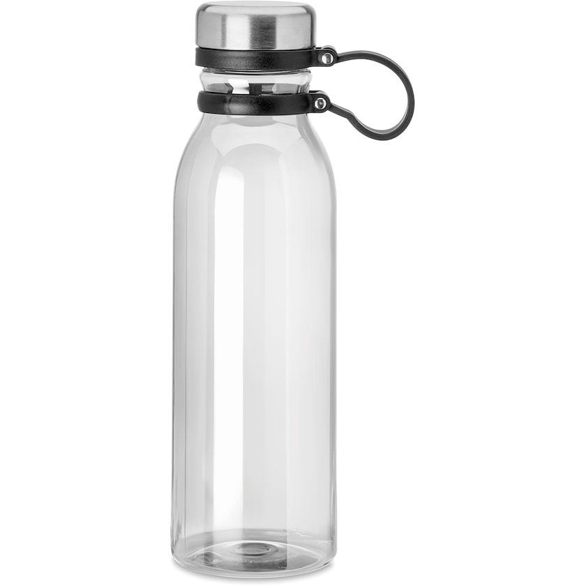 Umweltfreundliche Wasserflasche aus rPET. Der Verschluss wurde aus rostfreiem Stahl gefertigt. Die Flasche ist völlig BPA-frei und auslaufsicher. rPET wird aus recycelten PET-Flaschen gewonnen und ist daher ein umweltfreundliches Material. Für Limonaden und andere Erfrischungsgetränke ist die Flasche nicht geeignet.