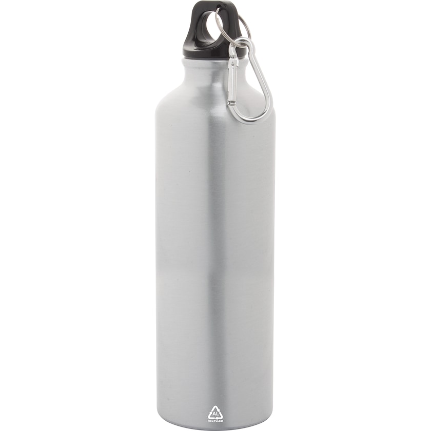 75 cl Wasserflasche aus recyceltem Aluminium. Der Deckel ist mit einem Karabinerhaken versehen. Logo kann entweder bedruckt oder lasergraviert werden.
