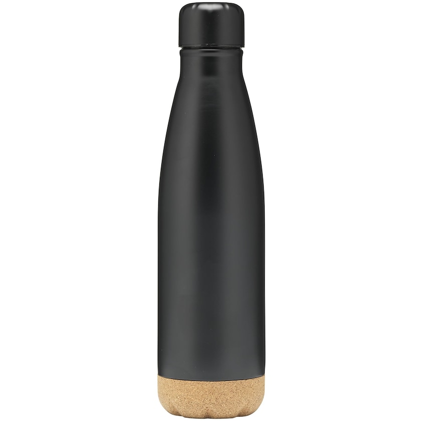 Vakuumisolierte Trinkflasche aus Edelstahl mit Korkboden. Dank der vakuumisolierten Doppelwände bleibt Ihr Getränk lange heiß bzw. kalt. Der Schraubverschluss ist auslaufsicher. Die Oberfläche ist ansprechend matt lackiert. Beim 1-farbigen Druck beträgt die Druckfläche ganze 120 x 65 mm.