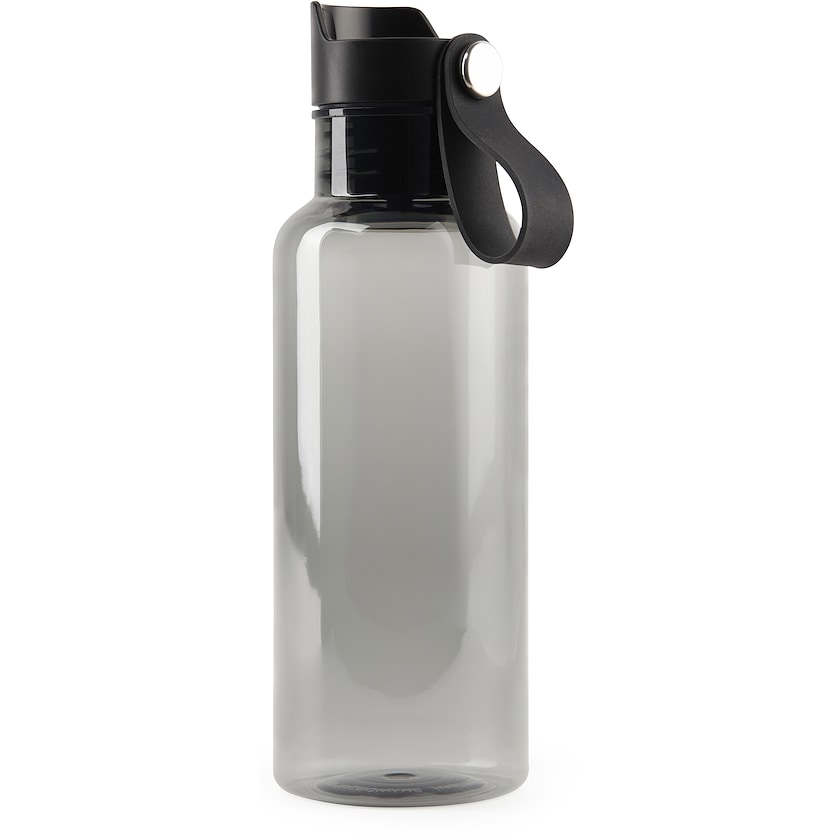 Wasserflasche mit intelligenter Öffnung. Die Wasserflasche hat einen Knopf am Deckel, der das Öffnen sehr einfach macht. Die Flasche besteht aus recyceltem PET. Nur für Kaltgetränke geeignet. Handwäsche.