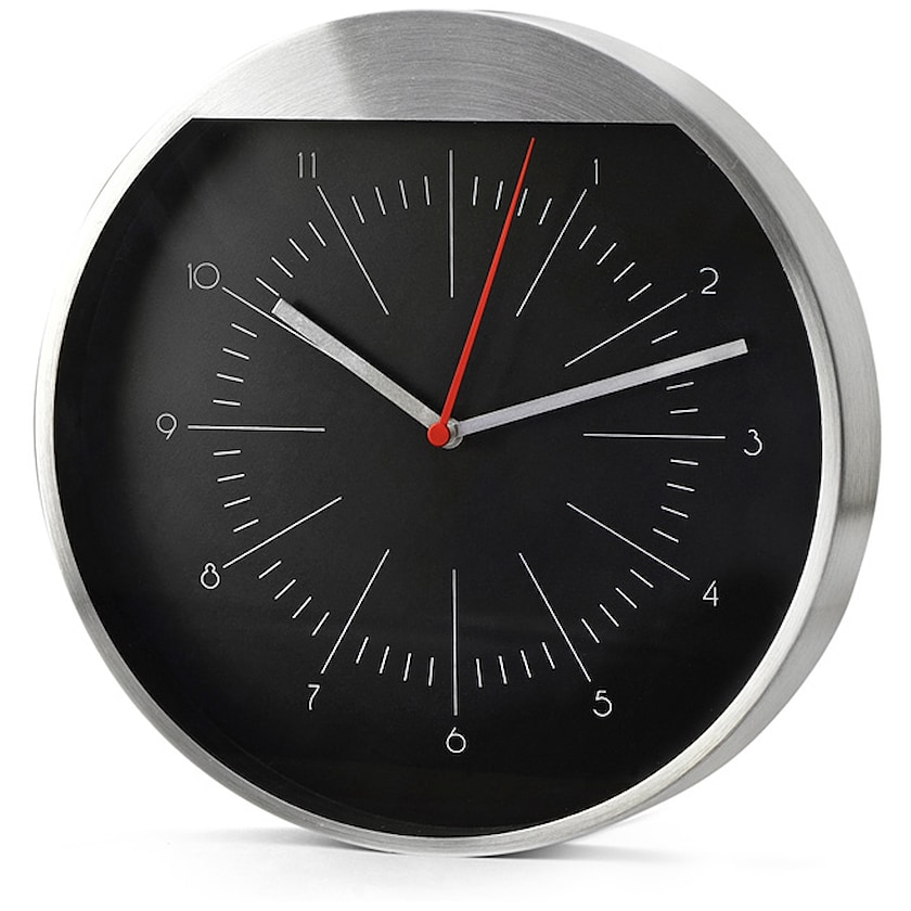 Metalluhr in futuristischem Design. Die Markierung erfolgt auf der oberen Metallkante. Wird mit einer AA-Batterie betrieben (nicht enthalten).