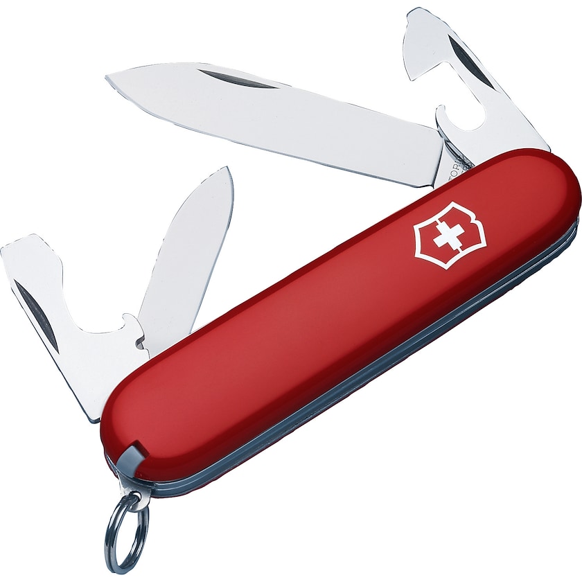 Eine Ikone unter den Messern von Victorinox! Victorinox Recruit hat 10 Funktionen. U. a. ein großes und ein kleines Messerblatt, ein Kombinationswerkzeug aus Flaschenöffner und Schraubenzieher sowie ein weiteres Funktionswerkzeug, bestehend aus Konservenöffner und kleiner Schraubenzieher.