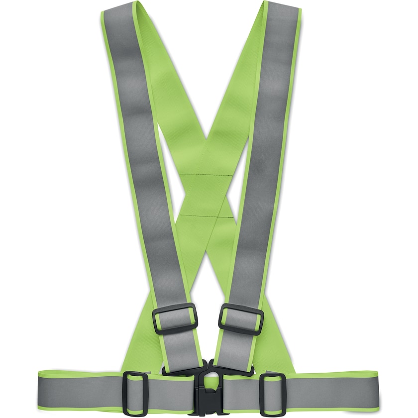 Verstellbarer Reflexgurt mit silberfarbenen Reflexen. Zugelassen nach EN 17353:2020, Typ B3 für verbesserte Sichtbarkeit bei schlechten Lichtverhältnissen. Der individuelle Aufdruck kann auf der Gürtelschnalle oder der Rückseite des reflexiven Gurts angebracht werden.