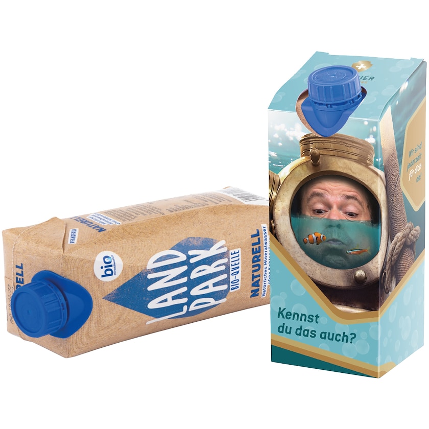 Mineralwasser von Landpark im selbstedesignten Pappkarton. Das Mineralwasser hat einen niedrigen Natriumgehalt und kommt direkt von der Quelle. Wählen Sie aus drei Geschmacksrichtungen. Die Kartonhülle besteht aus FSC-zertifiziertem Karton und ist komplett klimaneutral bedruckt. Die Originalverpackung ist recycelbar und hat einen deutschen Text.