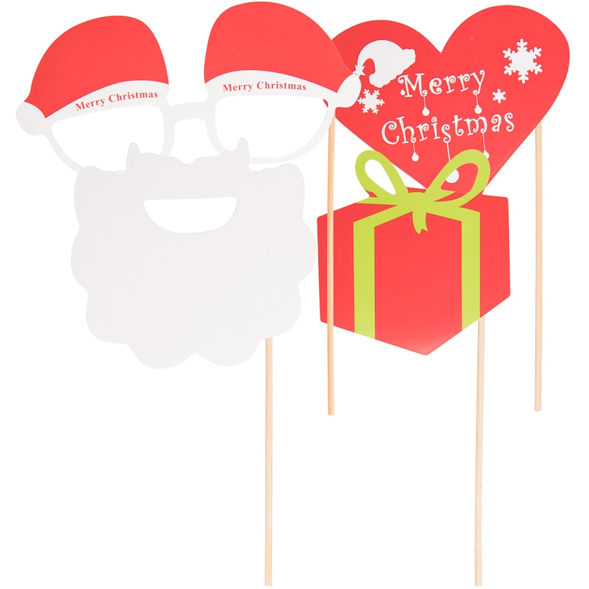 Selfie-Set mit Weihnachtsmotiv. Das i-Tüpfelchen bei jeder Weihnachtsfeier! Enthält vier Teile und eine Postkarte mit Weihnachtsmotiv. Ein Druck ist nicht möglich.