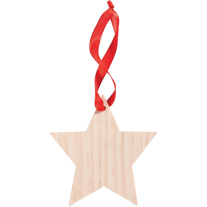 Wunderbarer Baumschmuck! Holzstern mit rotem Band. Die Markierung erfolgt entweder mit Druck oder Lasergravur.