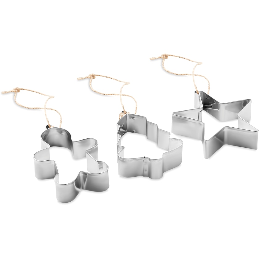 Set aus 3 Lebkuchenformen mit Aufhängeschnur. Anwendbar zum Backen von Lebkuchen oder als Christbaumschmuck. Geliefert in einer weißen Presentbox, die bedruckbar ist.