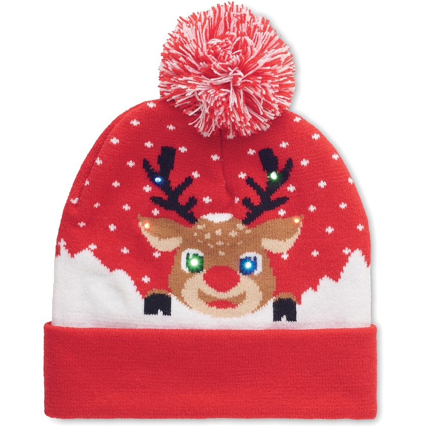 Mütze mit Weihnachtsmotiv mit 6 LED-Lichtern. Der Hut besteht aus wunderbar weichem Acryl. Mit diesem Hut werden Sie der Mittelpunkt der Weihnachtsfeier sein!