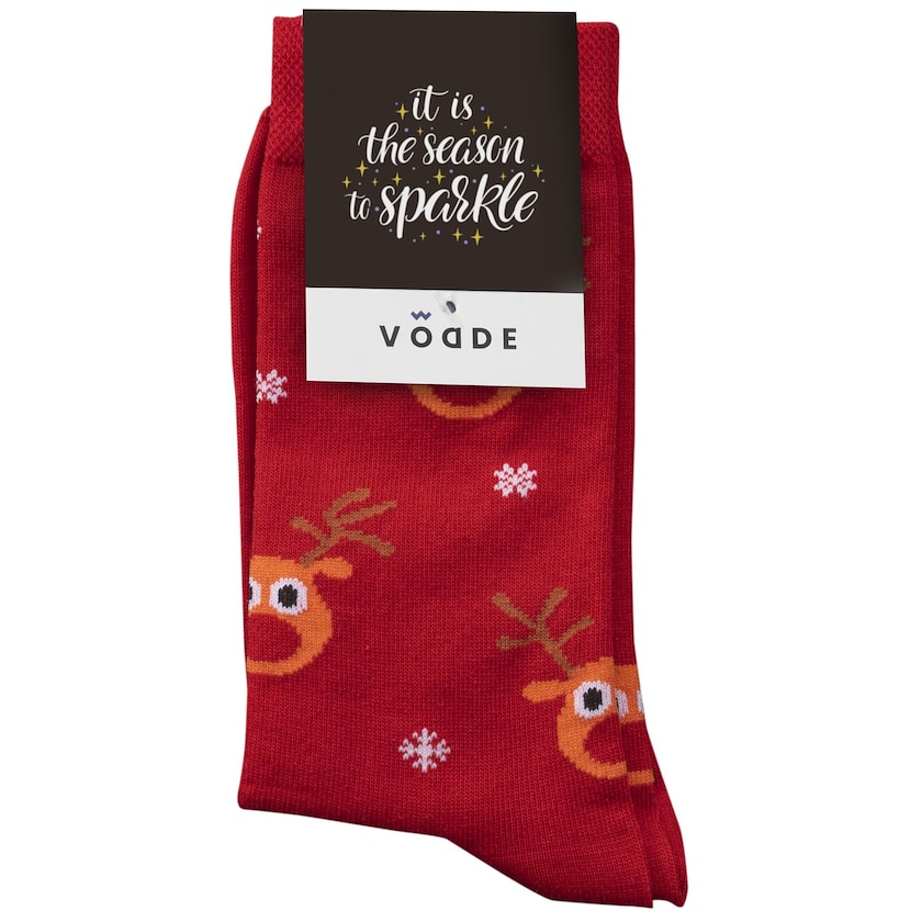 Umweltfreundliche Socken mit fröhlichen Weihnachtsmotiven. Der Stoff wird in Europa aus 52% recycelter Baumwolle, 44 %recyceltem Polyester und 4% Elastan hergestellt. Wählen Sie zwischen vier verschiedenen Farben. Die Motive können nicht verändert werden. Ihr Druck wird auf dem Etikett der Socken platziert. Erhältlich in den Größen M (36-40) und L (41-46). Die Mindestmenge pro Größe beträgt 40 Paar.