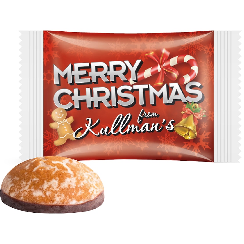 Kleine weiche Lebkuchen in der Verpackung mit eigenem Aufdruck. Der Lebkuchen stammt von Bahlsen und wurde zu 100 % klimaneutral hergestellt. Eine kleine Süßigkeit, die eine wunderbare Weihnachtsstimmung verbreitet. Laden Sie die Druckvorlage herunter und gestalten Sie Ihre eigene Verpackung.