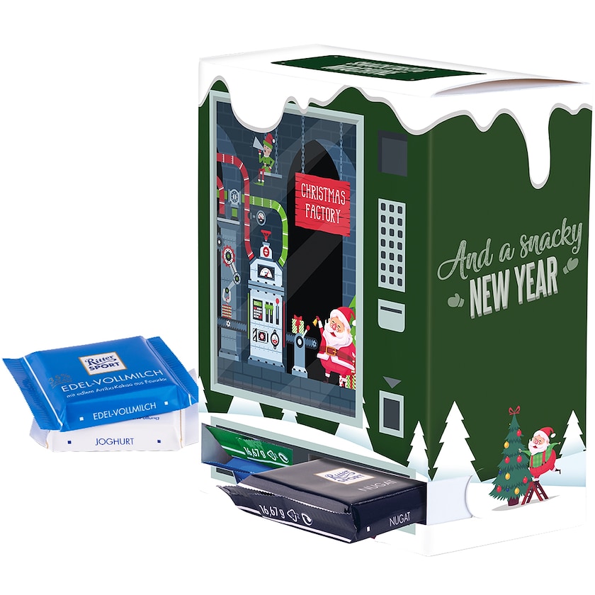 Einzigartiger Adventskalender mit Schokolade von Ritter Sport. Der Adventskalender hat keine traditionellen Türchen, stattdessen nehmen Sie sich jeden Tag ein Ritter Sport. Aus FSC-zertifiziertem Karton.
