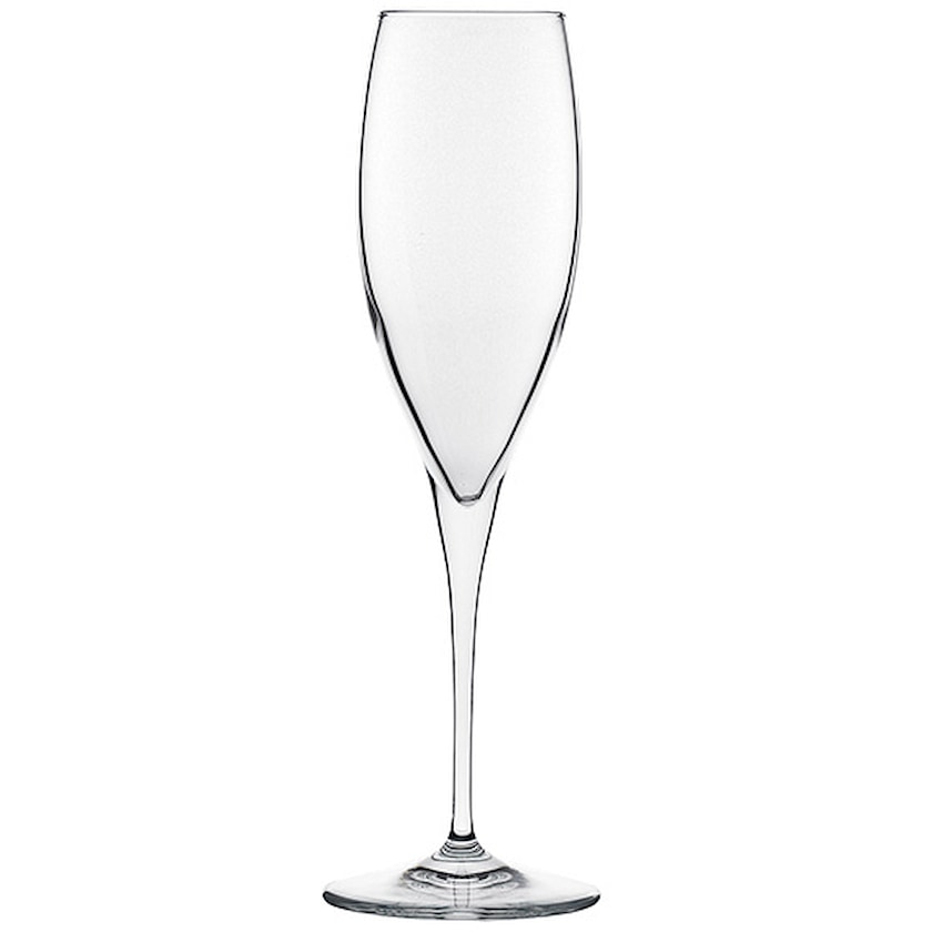 Erstklassiges Sektglas mit schönem Fuß. Hochwertigkeit und Eleganz zeichnen dieses Glas aus. Es ist nur 1-farbiger Druck möglich.