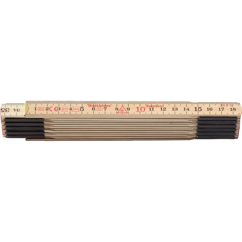 Klassiker des schwedischen Herstellers Hultafors aus Glasbirke und schwedischem Stahl. Der Zollstock hat etwas kürzere Messstäbe als normal, wodurch es einfacher in die Tasche passt. Metrische Skala in Schwarz mit roten Dezimeterzahlen auf beiden Seiten.