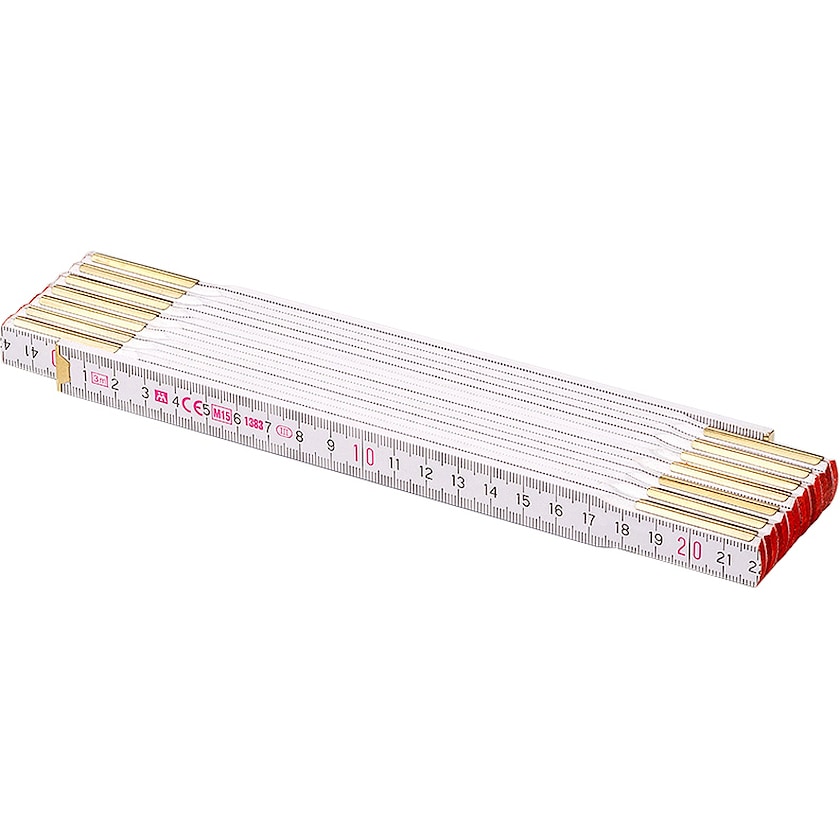 3m-Zollstock aus Holz für den professionellen Gebrauch. Nordic ist aus hochwertiger Buche, hat Messingbeschläge und verstärkte Stahlgelenke. Die Gelenke sind von Außen nicht sichtbar. Das Holz ist mit zwei Schichten bemalt und eine eine zusätzliche Schutzschicht. Der Zollstock wird in Europa hergestellt und bedruckt und erfüllt die EG-Baumusterprüfbescheinigung, Genauigkeitsklasse III EG und ist EC konform.